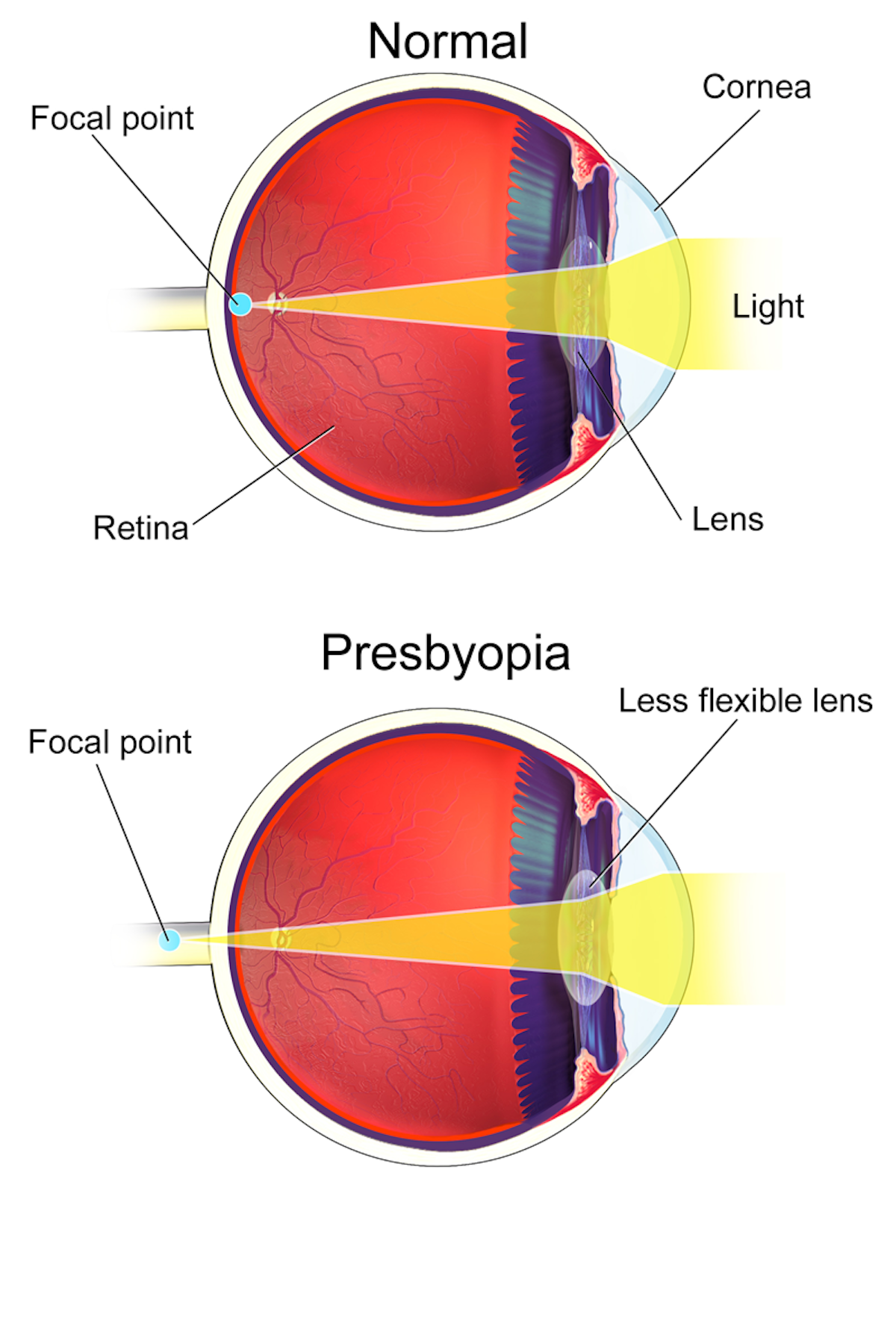 Με την ανάπτυξη πρεσβυωπίας έρχονται συνήθως αντιμέτωποι οι άνθρωποι μετά τα 40 έτη, με την κοντινή τους όραση να αρχίσει να χειροτερεύει. Η πρεσβυωπία πλήττει πάνω από ένα δισεκατομμύριο ανθρώπους παγκοσμίως και πρακτικά πρόκειται για την ανικανότητα του ματιού να εστιάσει σε κοντινά αντικείμενα. Δεν υπάρχει όμως μία επιστημονική συναίνεση ως προς τα αίτια αυτού. Μερικοί υποστηρίζουν πως καθώς ο φακός του ματιού γερνάει γίνεται βαρύτερος και δεν μπορεί να αλλάξει σχήμα εύκολα για να εστιάσει. Άλλοι θεωρούν πως ο μυς που τραβά το φακό γίνεται πιο αδύναμος και άλλοι το αποδίδουν και στα δύο. Όποια κι αν είναι η αιτία, το αποτέλεσμα είναι πως τα μάτια δεν μπορούν να κατευθύνουν το φως που περνάει στο κέντρο του αμφιβληστροειδούς και το φως εστιάζεται πίσω από αυτόν, με αποτέλεσμα τη θολή όραση